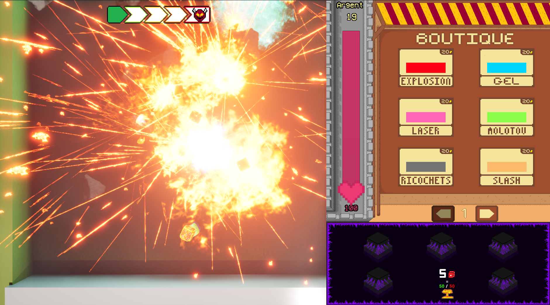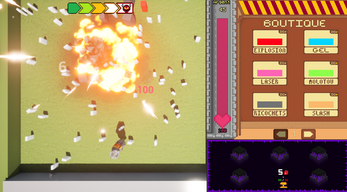 Left click on an ennemy to apply damage, right click to shoot your dices, you got a shop, a variable for money, and an amelioration shop.